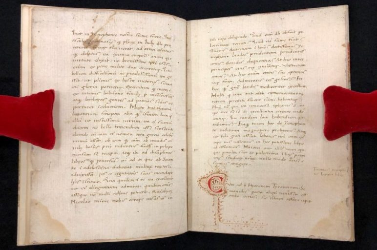 Kenneth Spencer Research Library MS C277 includes a translation from Greek into Latin of the Epistles of Phalaris by Francesco Griffolini of Arezzo (1420–1483?).