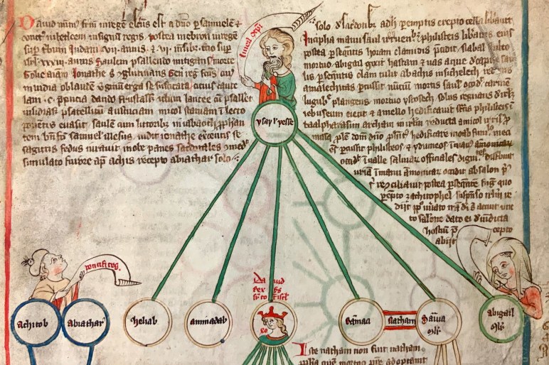 Kenneth Spencer Research Library MS 9/2:29 contains part of the Compendium historiae in genealogia Christi (‘Compendium of the History on the Genealogy of Christ’) compiled by Peter of Poitiers.