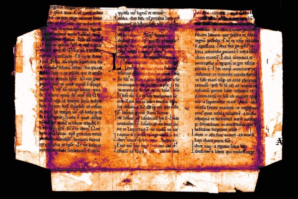 When I compared the text of MS 9/2:16 with Isidore’s Etymologiae, I noticed that the fragment did not follow the order of books and chapters of the work, although individual passages certainly were directly taken from the Etymologiae. For example, on the recto side of the fragment, the text moves from the fourteenth chapter to the twelfth chapter of the sixth book of the Etymologiae in the first column with no apparent break and then on to the fifth chapter of the ninth book in the second column before going to the fifth chapter of the fourteenth book in the third.